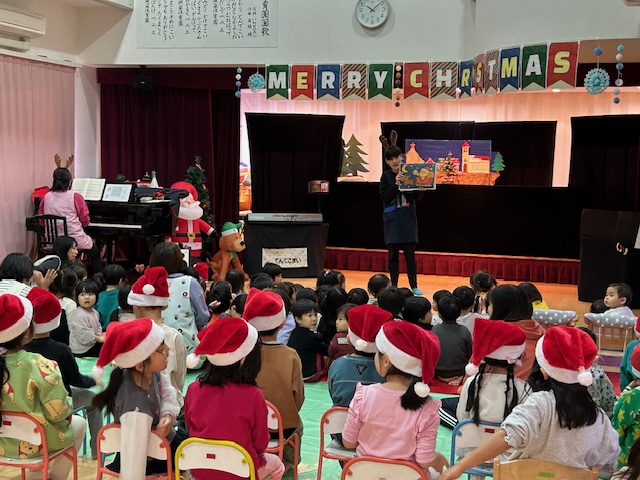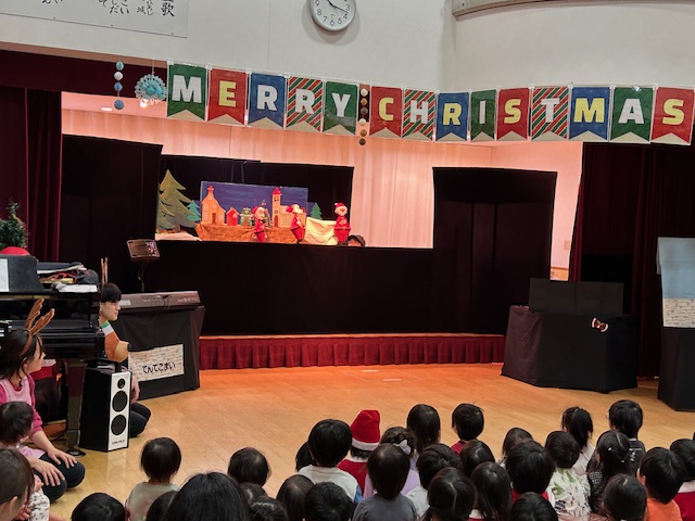クリスマス会では、ばんび組、こあら組が英語のクリスマスソングを発表してくれたり、シアタートントンさんにお越し頂き、人形劇やパネルシアター鑑賞があり、とっても盛り上がりましたよ(^^♪